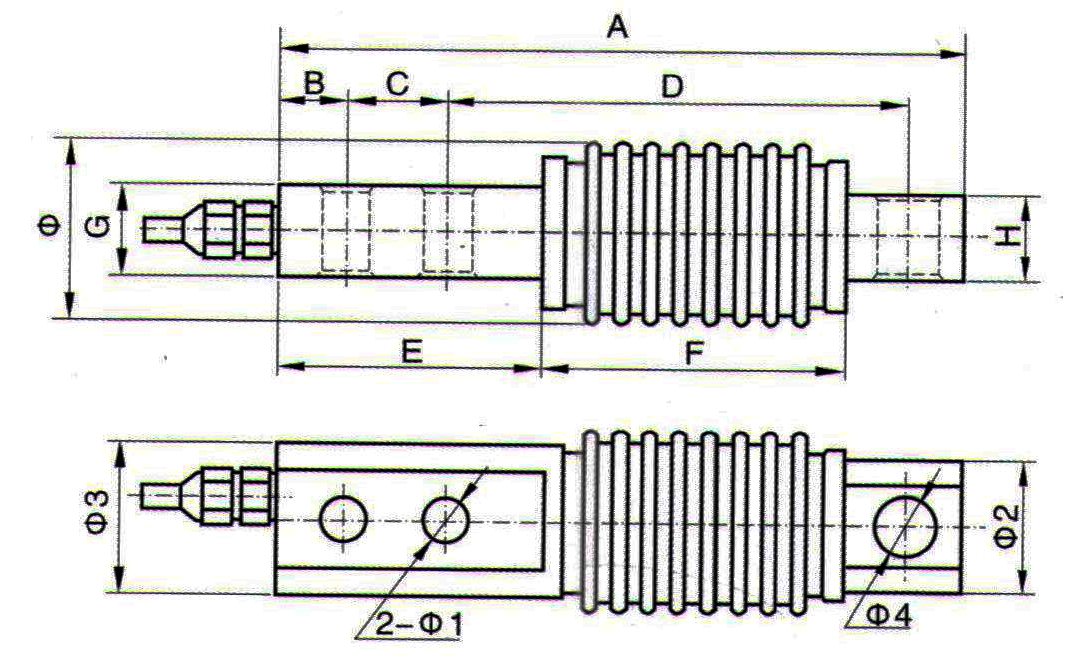 型號 | 量程(kN) | 量程(kg) | A | B | C | D | E | F | G | H | ? | ?1 | ?2 | ?3 | ?4 |