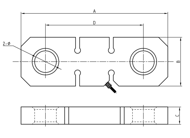 型號 | 量程(kN) | 量程(t) | A | B | C | D | Φ |