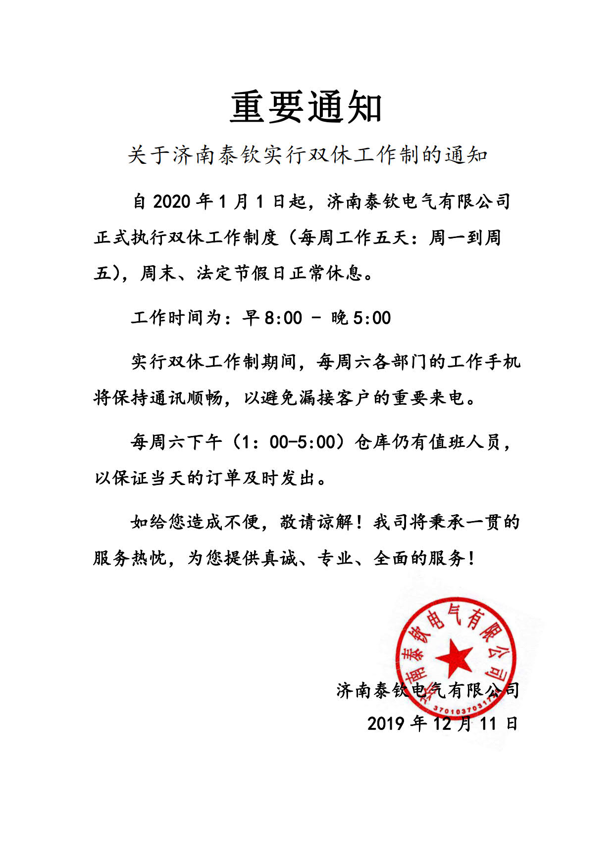雙休工作制調(diào)整通知