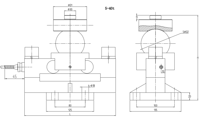 型號 | 量程(kN) | 量程(t) | D1 | D2 | H | L |