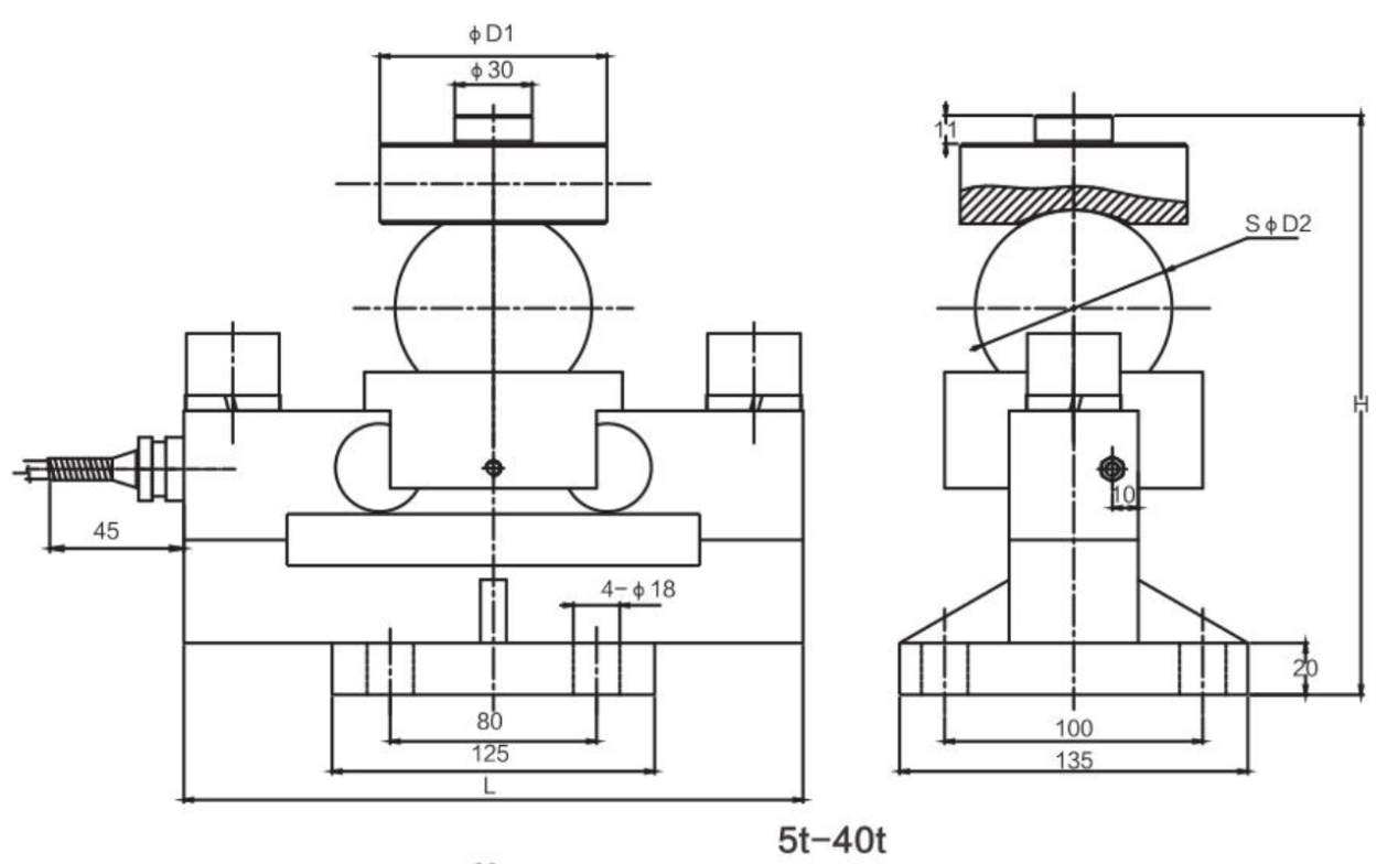 量程(kN) | 量程(t) | D1 | D2 | H | L | |