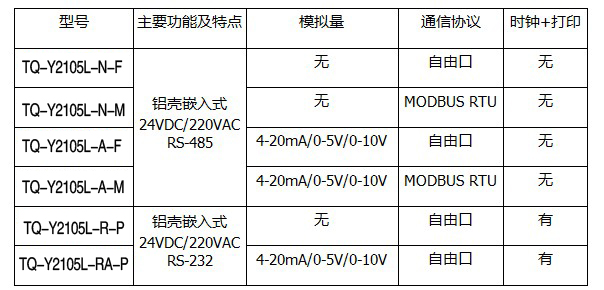 TQ-Y2105L 系列儀表功能: