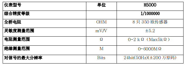 (2) 電阻測量量程 2kΩ,最大 5kΩ,測量精度 0.01Ω:靈敏度量程土5.2mV/V,測量精度 0.00001mV/V。