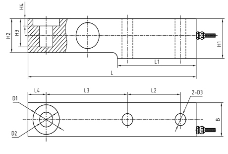 型號 | 量程(kN) | 量程(t) | L | L1 | L2 | L3 | L4 | H1 | H2/B | H3 | H4 | D1 | D2 | D3 |
