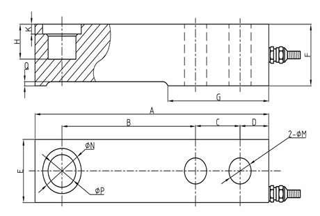 型號(hào) | 量程(kN) | 量程(t) | A | B | C | D | E | F | G | H | K | M | N | P | Q |