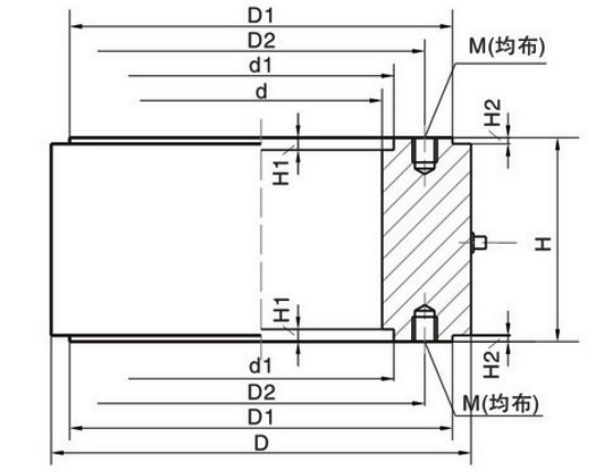 型號 | 量程(kN) | 量程(t) | D | D1 | D2 | d | d1 | H | H1 | H2 | M |